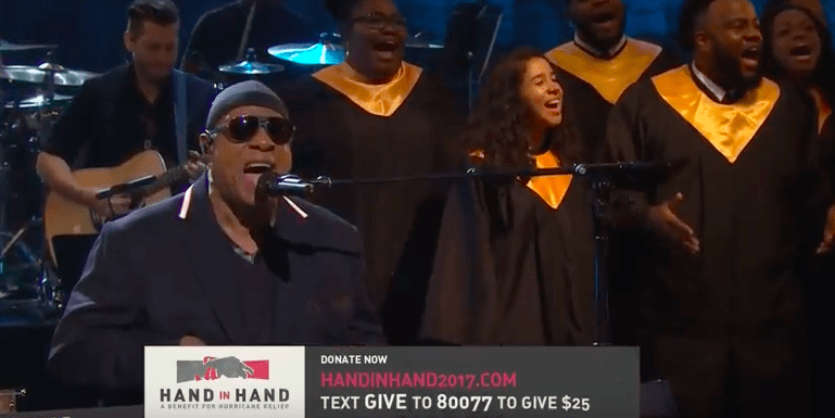 Stevie Wonder opens Hurricane Harvey telethon with global warming joke